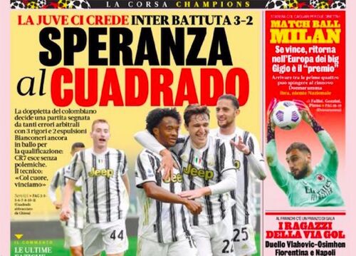 2020/21 セリエA第37節インテル戦は両チームに退場者が出る中、クアドラード選手のドッピエッタでユベントスが 3-2 で勝利しました。 先発した両チームの選手とフォーメーションは以下のとおりです。 PR
